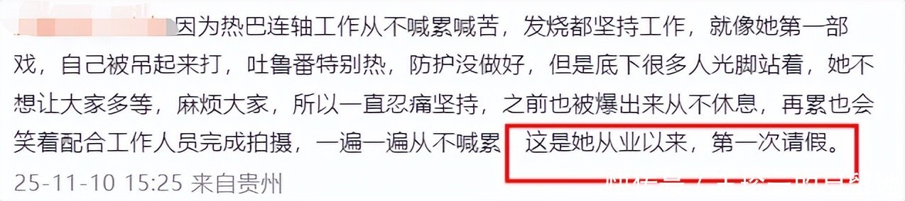 有粉丝透露,这是迪丽热巴出道以来第一次因为身体健康原因请假,无法拍戏。