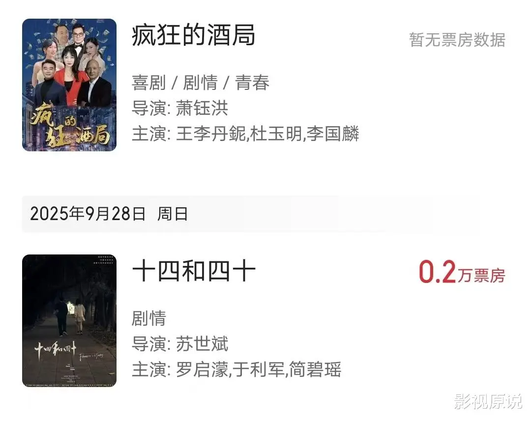 早在今年9月20日国庆档正式到来之前,《疯狂的酒局》就已经开始卖票上映了,到现在过去了有半个多月的时间,而它的票房数据统计却还是零元。