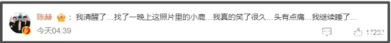 倒是晚认识的鹿晗,他很给面。发完合照后,他凌晨特意在评论区补充提了一嘴鹿晗,称清醒后在合影中找了一晚上鹿晗差点没找到,说完重点又表示头痛继续睡。老实话,鹿晗的照片拍得确实不清晰,面部漆黑一片,但这般强调显得过于刻意了。