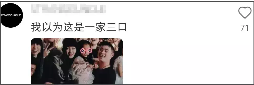 看到陈赫抱娃跟其他异性看起来更亲近的照片,不少网友表示恍惚以为“他们才是一家三口”,还有的吐槽“两个大人关系看着不一般”。从构图来说,该异性跟她隔壁的一位中间有巨大空隙,实在是离陈赫及娃太近了。陈赫和张子萱的婚姻因为“第三者插足”争议一直不敢正大光明秀恩爱,很容易让人产生坏的联想。但事情到底是什么样,也不能全凭一张图判断。